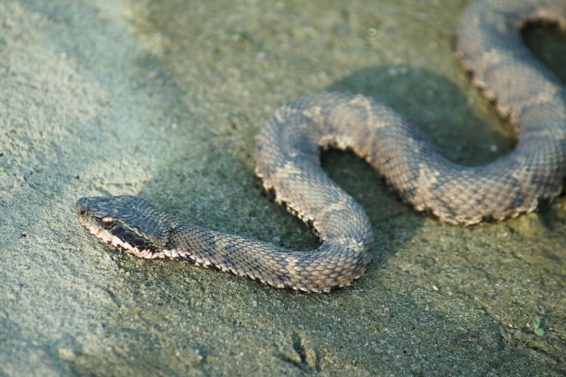 ※距離があると瞳孔は見えにくいですが、三角のずんぐり頭+ピットは強い決め手です。